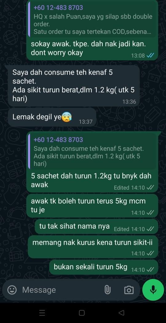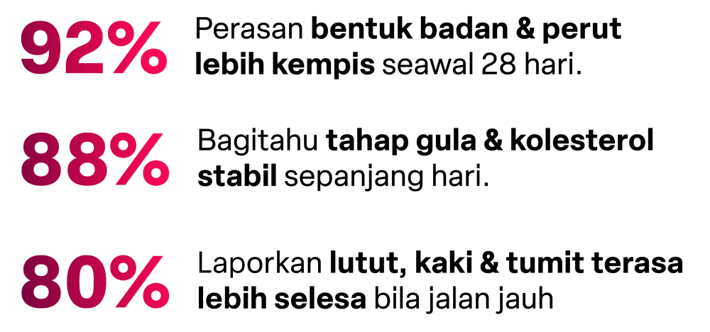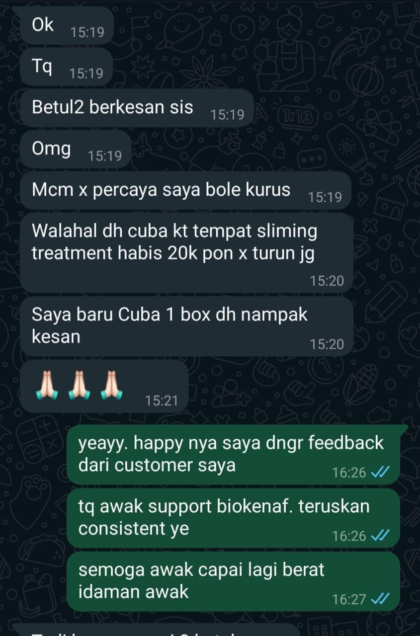 “Berat saya turun 8kg Selepas Amal 3 Kotak, hairan saya, kat mana hilang lemak sebab takde cirit birit, tapi yang saya perasan selera makan saya berubah, buang air besar lawas, paling best! Gout saya eh tibe tibe hilang!” – En. Mustam.