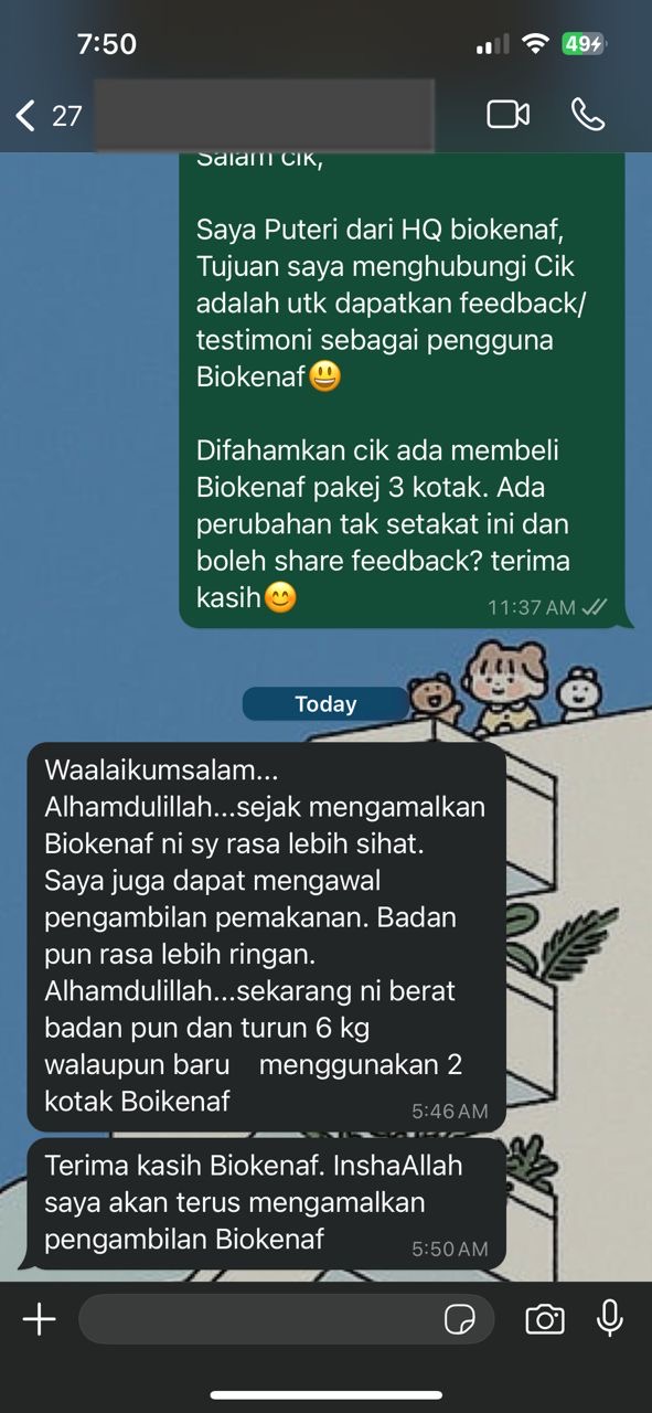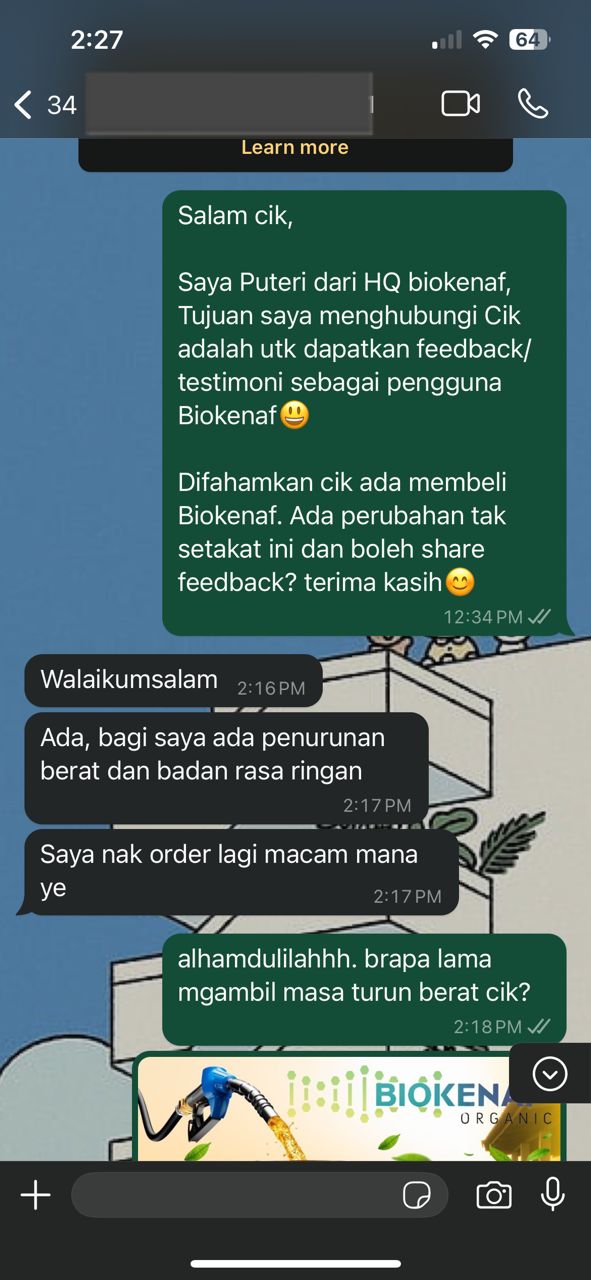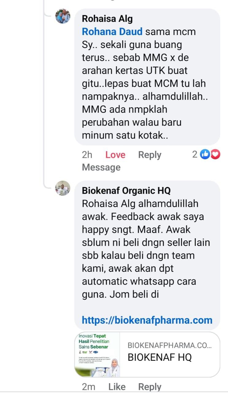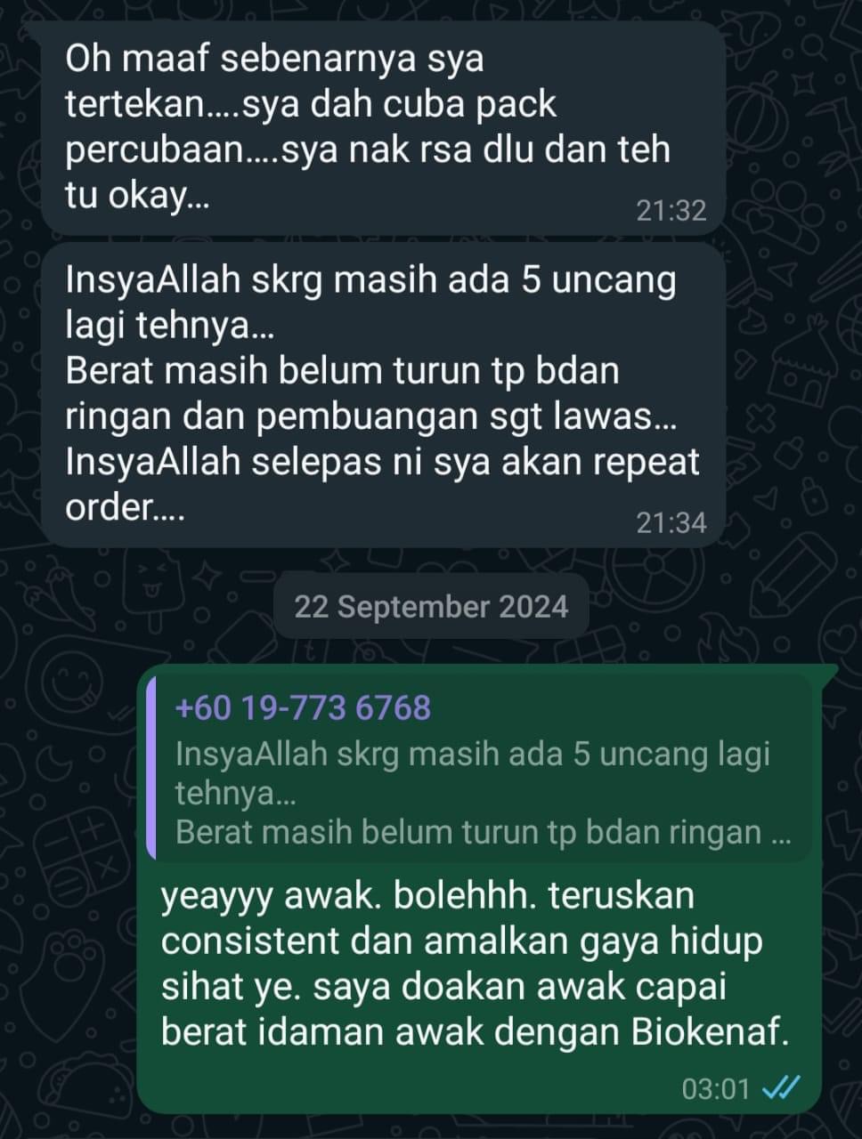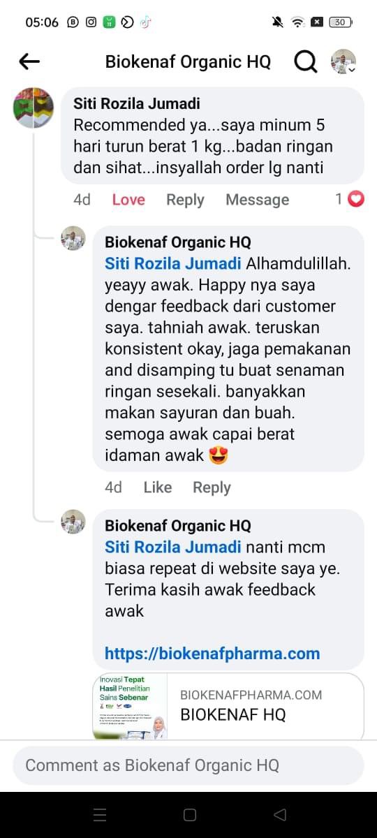 “Sebagai seorang saintis, saya perlu buktikan keberkesanan produk ini, bukan sahaja melalui kajian terperinci, dengan amalkan Biokenaf® saya dapat buktikan penurunan berat & penghapusan kolesterol jahat secara natural.” – Ts. Dr. Maryana Mohd Nor